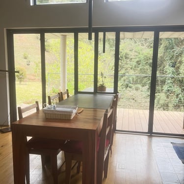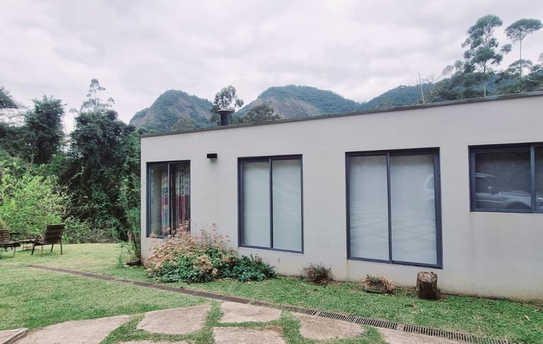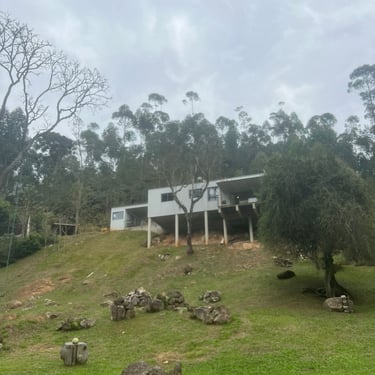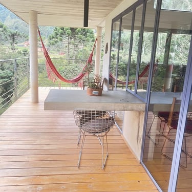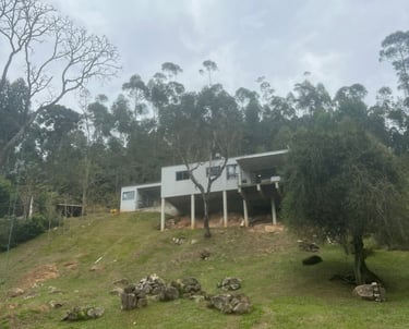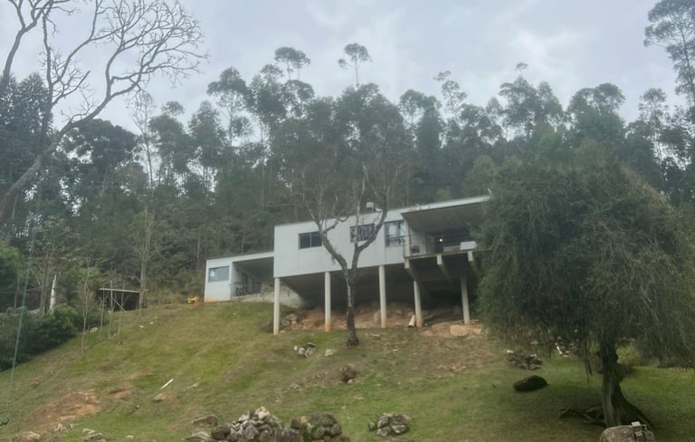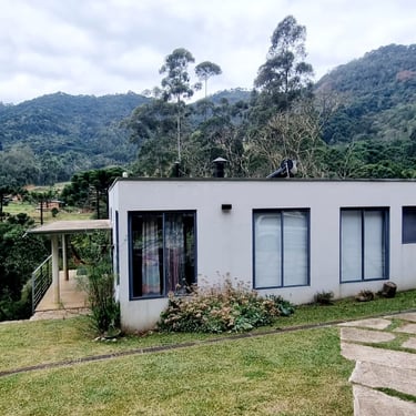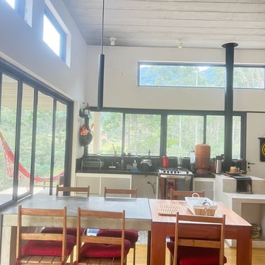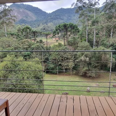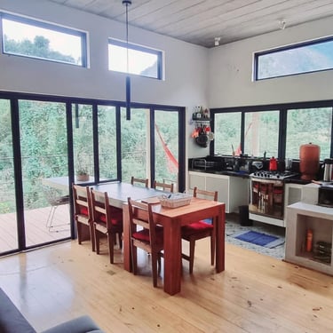 Descrição: Sala com lareira integrada à cozinha; Cozinha com fogão à lenha; 3 quartos, sendo: 1 suíte com hidromassagem; 1 banheiro social