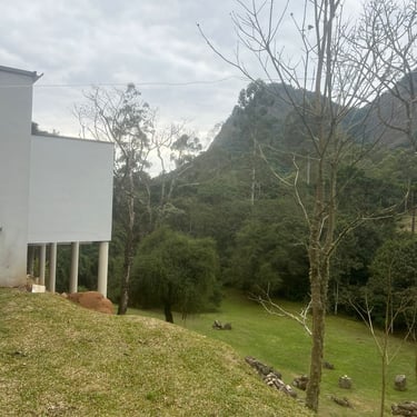 Área externa: Rio serpenteando a propriedade por 400 metros de divisa